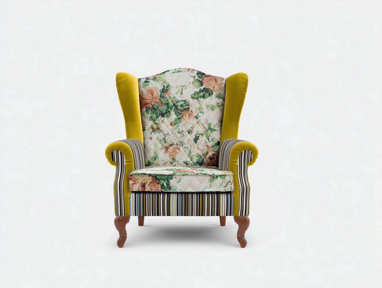Poltrona a orecchioni in tessuto patchwork 82x79x108 cm - multicolore - stile classico decorativo per soggiorno
