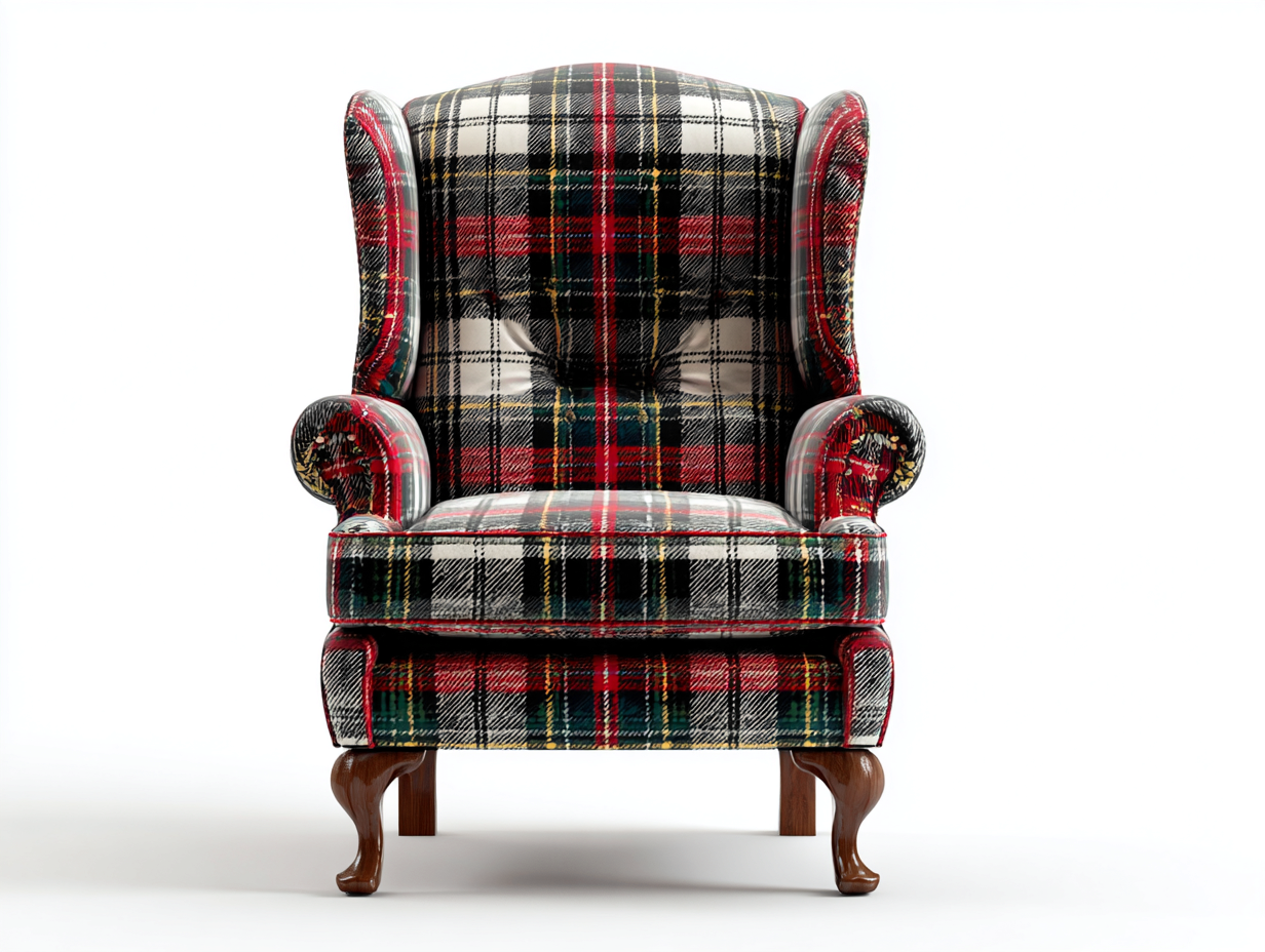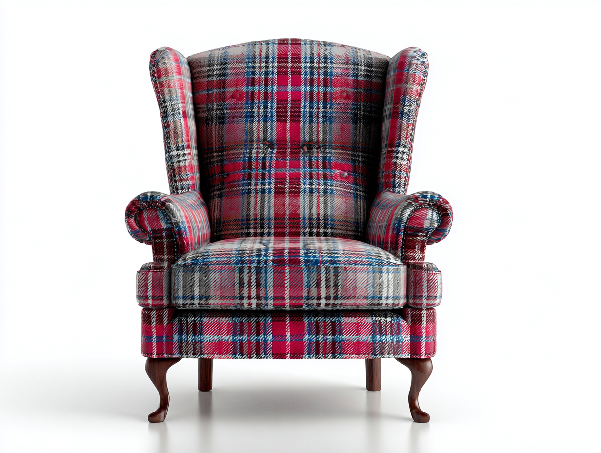 Poltrona a orecchioni in tessuto tartan 84x81x108 cm - multicolore - stile classico per soggiorno