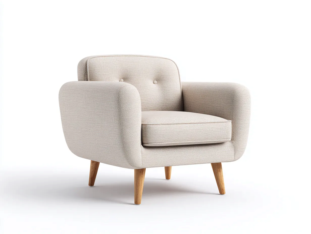 Poltrona - tessuto-legno - 74x80x88 cm - beige chiaro - design moderno